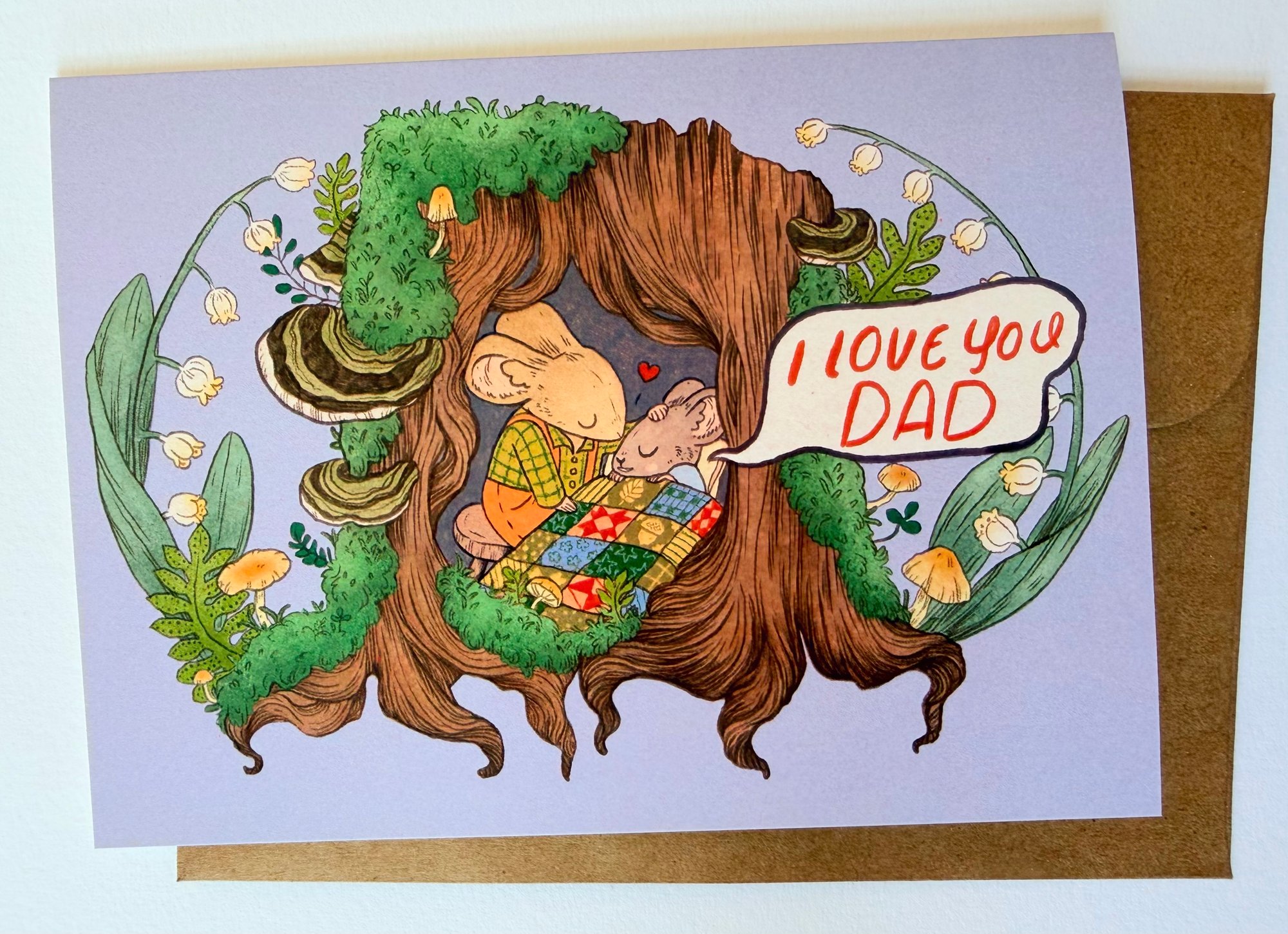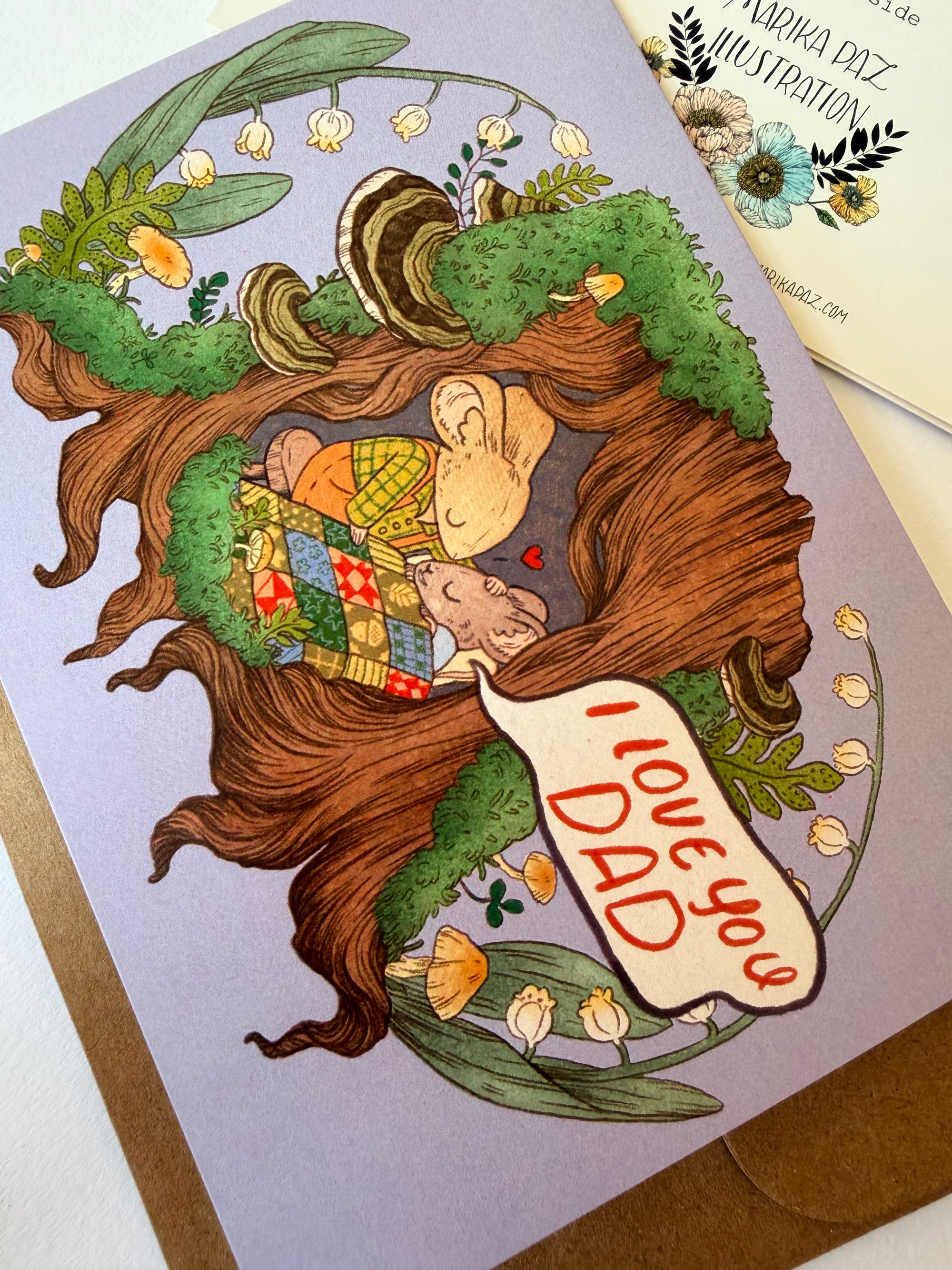 Card is A6 4.5" x 6.25" and comes with an envelope and sleeved for protection. Cards are folded and blank inside. Envelope is Kraft Brown. Professionally printed on heavy matte natural card stock. Printed in USA.